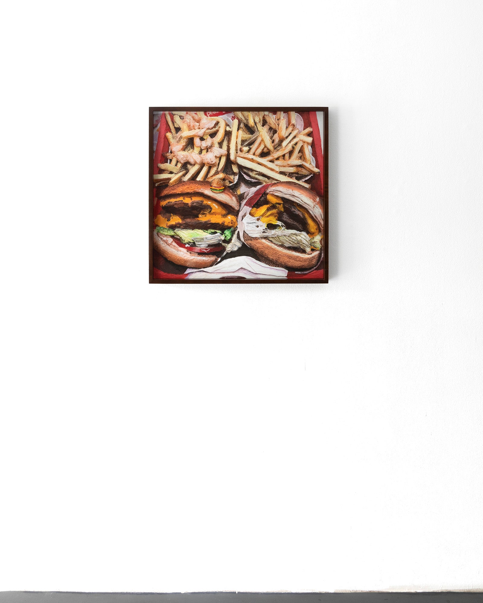 One of her most talked-about works is the playfully bulging cheeseburgers and fries, In-N-Out Burger (2014), taken from an up-close shot of one of the fast food chain’s signature dishes. For her edition for Spike, Beavers turned her painting back into a 2-D image, each print adorned with a sculptural burger emoji made out of masses of paint acrylic sits on top of the flat picture. These unique editions – not one is alike – prove that Beavers can just as well flatten her own images, and make them swell all over again.
