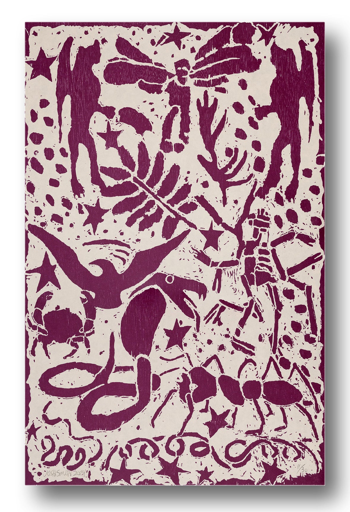 “Woodcut has a raw, tactile quality that strips everything down to its essentials – a quality I’ve always been drawn to in painting and printmaking. It feels regal, and also clumsily American.”
