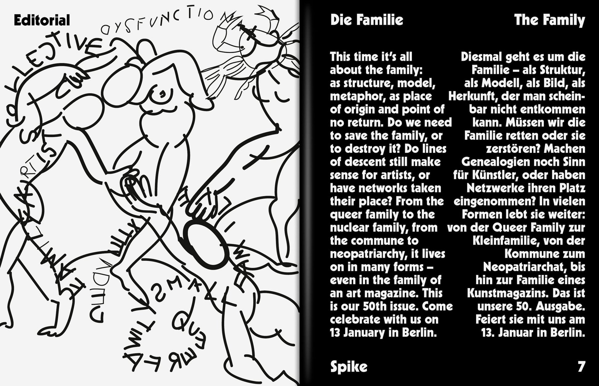 The family as structure, model, metaphor, place of origin and point of no return. A starry cast of contributors including Dominikus Müller on Oscar Murillo and Henrik Olesen, Bruce Hainley on Claude Wampler, and Nicholas Schafhausen on Gerhard Richter. Aaron Moulton takes us from a nativity scene in Otto Muehl’s commune to a grave-digging by artist Lazaros, Aki Sasamoto tells us who her favourite artists are. The psychoanalyst Jamieson Webster and philosopher Chiara Bottici write about the Kardashians and the Freudian family in their essay “The Family Is Sick”.