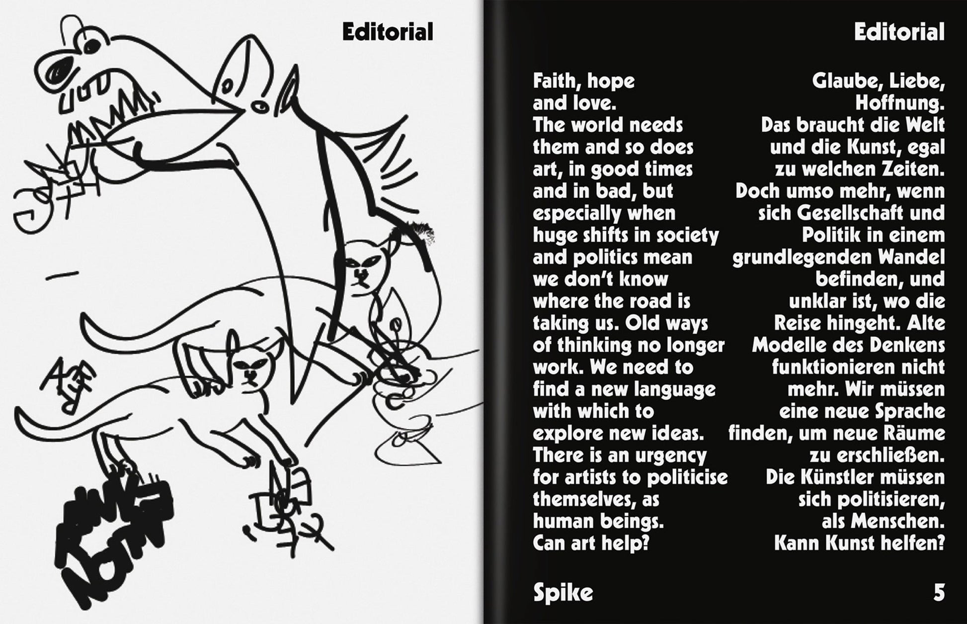 The power of art and its social role are the subjects of a roundtable discussion with curator Chus Martínez, artist Michaela Meise and philosopher Dieter Lesage. Josef Strau talks about how art saved him, while Kenny Schachter finds it both a remedy and a defence. Daniel Baumann delves into the promise of form; for the critic Jan Verwoert a key function of art is that it teaches forms of conduct. Profiles on the painter Dorothy Iannone and her connections to Fluxus, and the Japanese artist Tetsumi Kudo and his “philosophy of impotence” are joined by pieces taking on the decline of the supermodel, the Netflix series The Crown, and Jimmie Durham’s retrospective at the Hammer Museum.