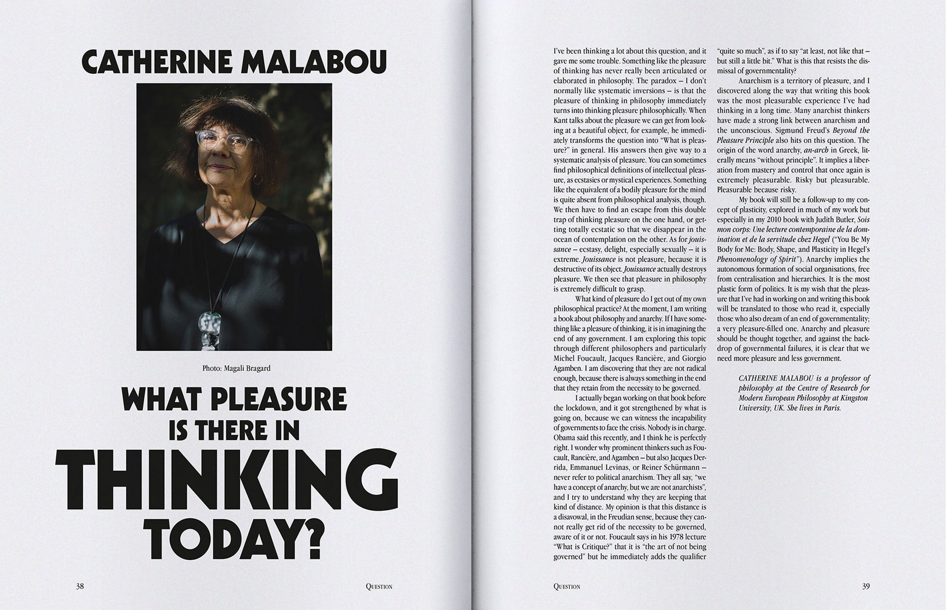 For this early-pandemic issue, we gave our contributors : an open invitation to tell us what’s in their heads right now. Whether under lockdown inside, or outside under protest, it is clear that the mind has no off-switch. Whether deeply personal, or overtly political, our authors continue to surprise with their level of insight and the playfulness of their imagination. Contributions include Shanghai-based writer Alvin Li, who documents his need for intimacy in isolation, French philosopher Catherine Malabou’s answer to the question of pleasure and thinking today, feature profiles on multimedia artist Cao Fei in conversation with curator Hou Hanru, the New York label Women’s History Museum who have been tearing down the decadence of couture for the last six years, and fashion icon Walter Van Beirendonck.