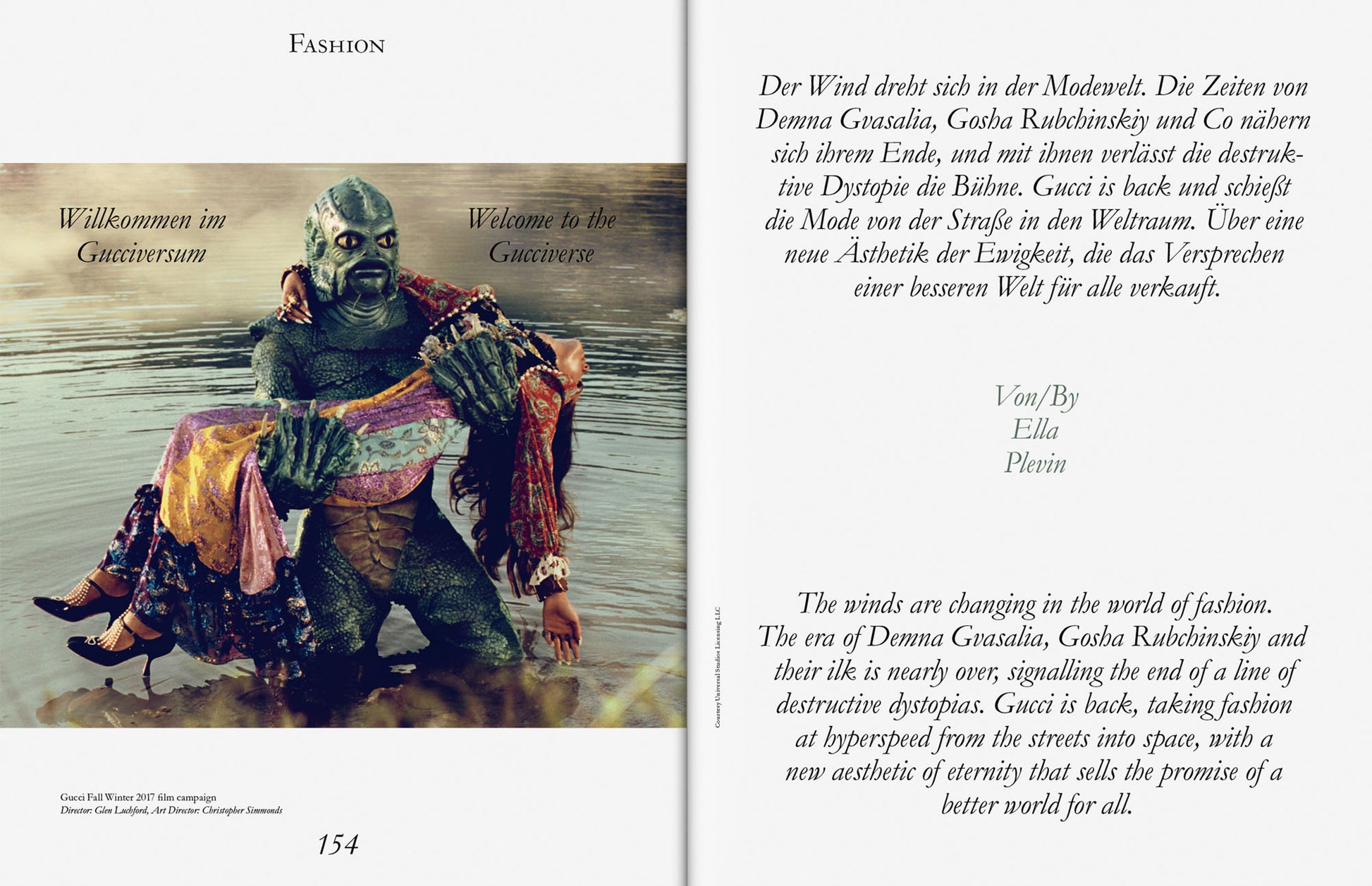 Reality can’t be trusted. Elon Musk believes we live in a computer simulation, everybody is saying we live in a post-truth era, and when we buy food it comes with a guarantee that it’s real. We look at artists who have founded companies, Francesco Vezzoli’s fascination with television, the slowed-down performances of Maria Hassabi at this year’s Documenta. The stylist Ella Plevin writes about the latest Gucci campaign and Asad Raza explains why tennis has become interesting again. A Kickstarter project by the artist Emily Jacir, the current significance of the readymade, and the question of truth in documentary film. The poet Wayne Koestenbaum on porn, the philosopher Tristan Garcia on “the real”, and Gabi Ngcobo on Mmakgabo Helen Sebidi. Artists Calla Henkel & Max Pitegoff send us a postcard from Washington DC.